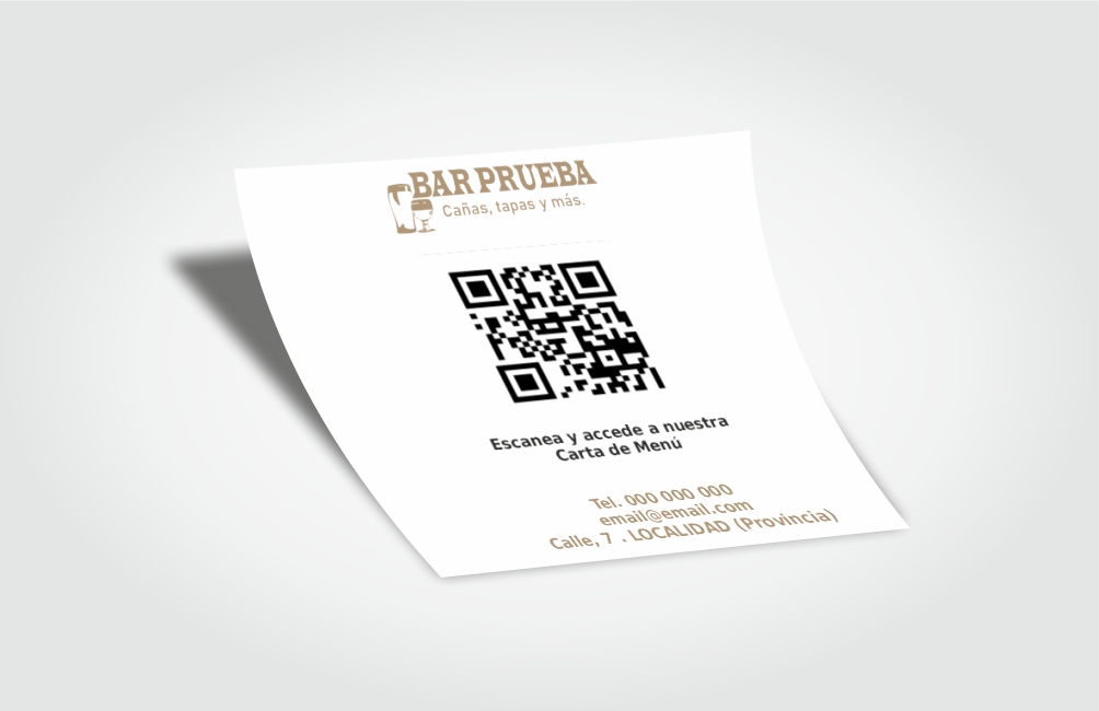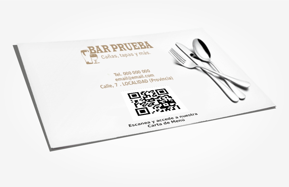 Un código QR podrá estar visible en tu establecimiento en diferentes ubicaciones mediante pegatinas, tarjetas, carteles, manteles, en la mesa, en la barra… dónde quieras. Tus clientes escaneran este sencillo código con su móvil y accederán a tu carta de menú digital.