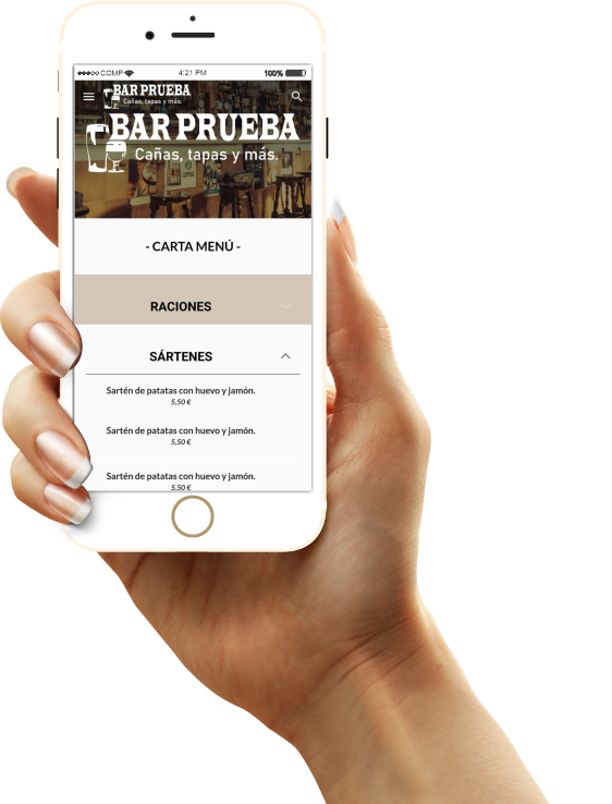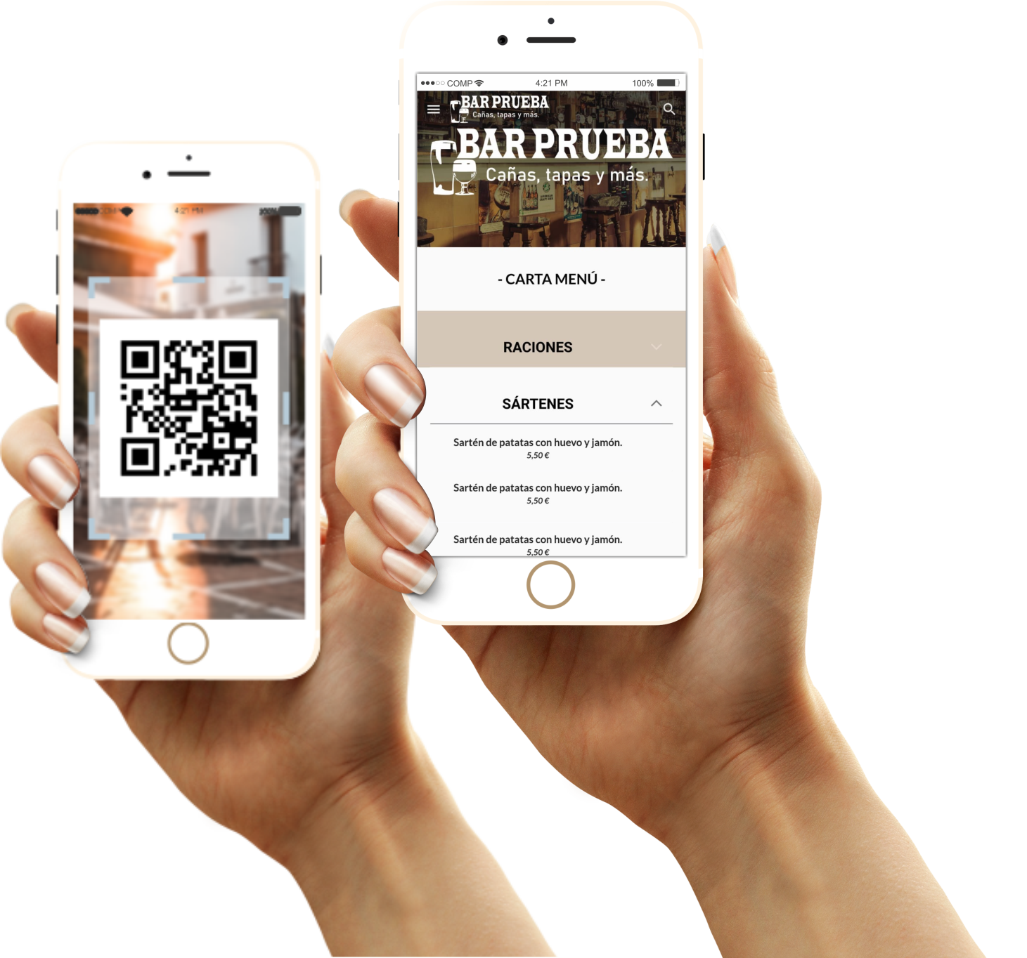 Es una carta de menú que se puede consultar en un dispositivo móvil, como es un teléfono inteligente con conexión a internet. La carta quedaría alojada como si de una página web se tratase y consultarla es muy fácil. Únicamente escanearemos un código QR que nos llevará directamente a ella.