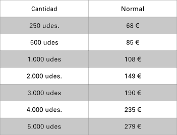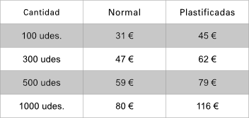 Tarjeta 8,5×5,5 cm. a 4/4 tintas (impresióna color doble cara), en papel estucado mate de 350g.